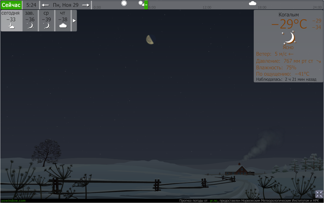 Прогноз погоды представлен Норвежским метеорологическим институтом