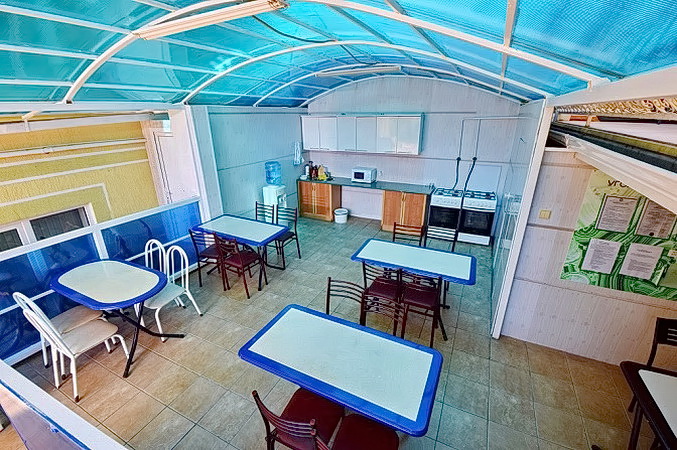 - мангалом; - летней кухней, где имеется все необходимое для приготовления пищи; - автостоянка под видеонаблюдением; - автобусом, который бесплатно вас довезет до моря. К нашим платным услугам относятся: • 2-х местные номера стандарт со всеми удобствами в номере и с небольшой кухней;