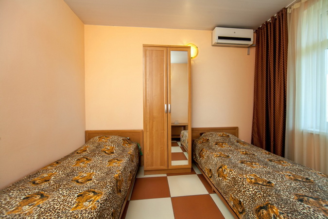 Количество спальных мест: 1 Описание: Количество номеров – 13 (номера на 1-3 этаже). Площадь – 18 кв.м. Балкон – да (кроме 1 этажа). Количество основных мест – 2. Дополнительное место – нет. Покрытие пола – плитка. В номере: две 1-спальные кровати, прикроватные тумбочки, трюмо, зеркало, вешалка, шкаф, письменный стол, стул, обувница, телевизор, кондиционер, холодильник, набор посуды для напитков (стаканы и поднос). В санузле: умывальник, зеркало, унитаз, душевая кабина, электрический полотенцесушитель, комплект полотенец, тазик для стирки, гигиенические принадлежности (жидкое мыло, туалетная бумага), фен. Сервис: - уборка номера – 1 раз в 2 дня (вынос мусора – ежедневно); - смена белья – 1 раз в 7 дней; - смена полотенец – 1 раз в 5 дней или по требованию.