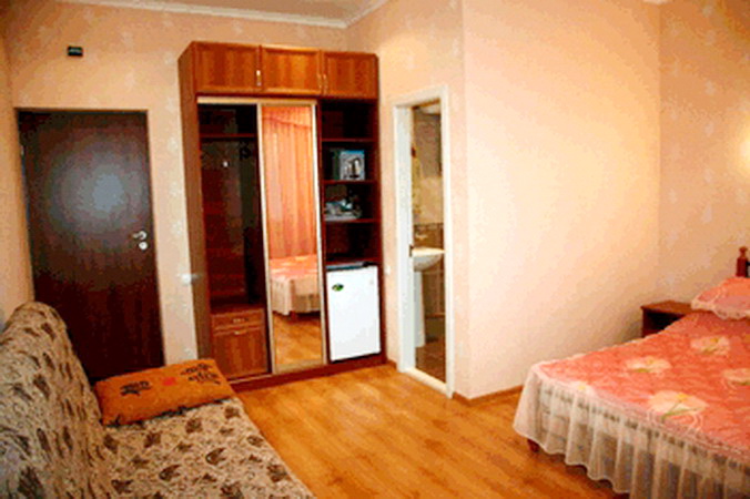 Гости могут дополнительно воспользоваться детской кроваткой (стоимость 250 рублей в сутки). Номера категории "полулюкс", 2-х спальная кровать + 2-х спальный диван, выгодно отличаются хорошим уровнем комфорта в сочетании с невысокой ценой. Площадь номеров данной категории - 25 кв. м. Площадь балконов - 6,5 кв.м. Номера гостиницы Учкуевки дают возможность размещения до 4-х человек (кроме кровати, 2 дополнительных места на раскладном диване). Всего - 2 номера. Адресместонахождения